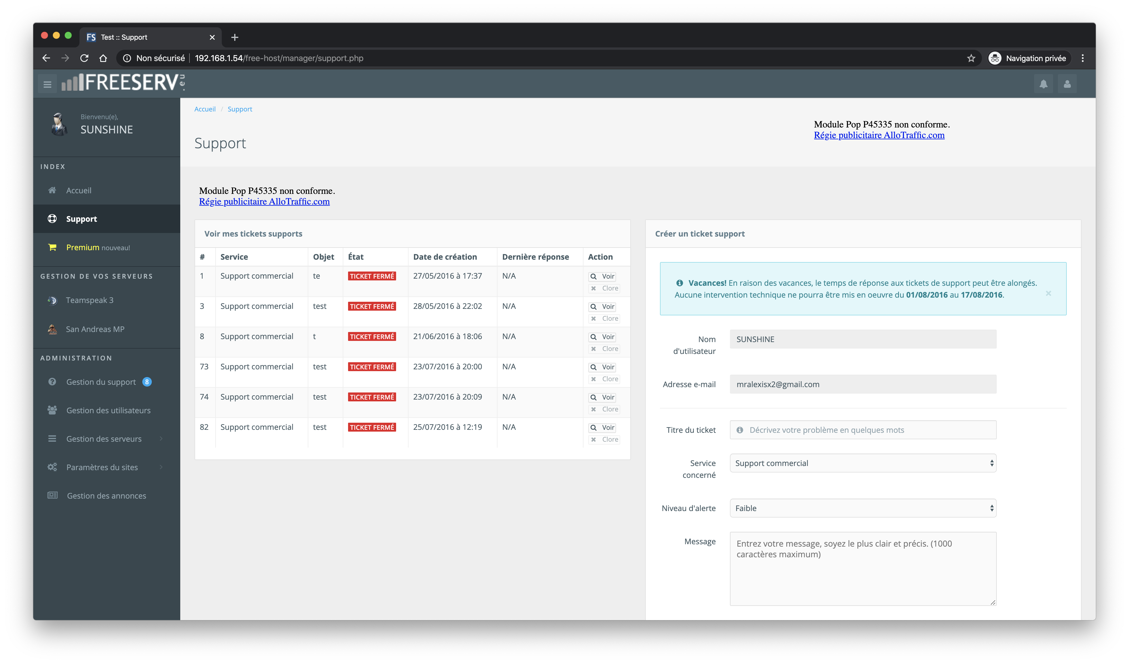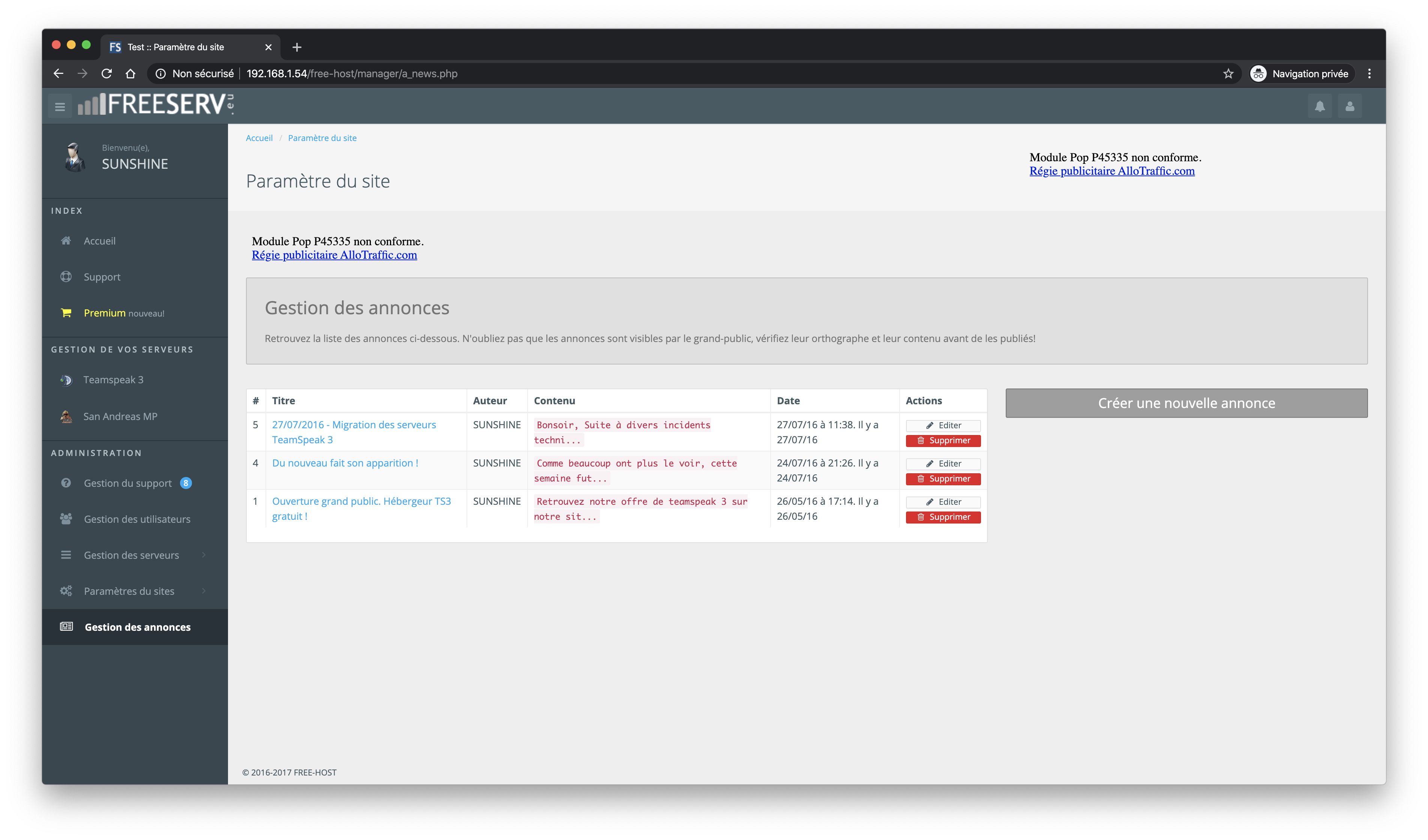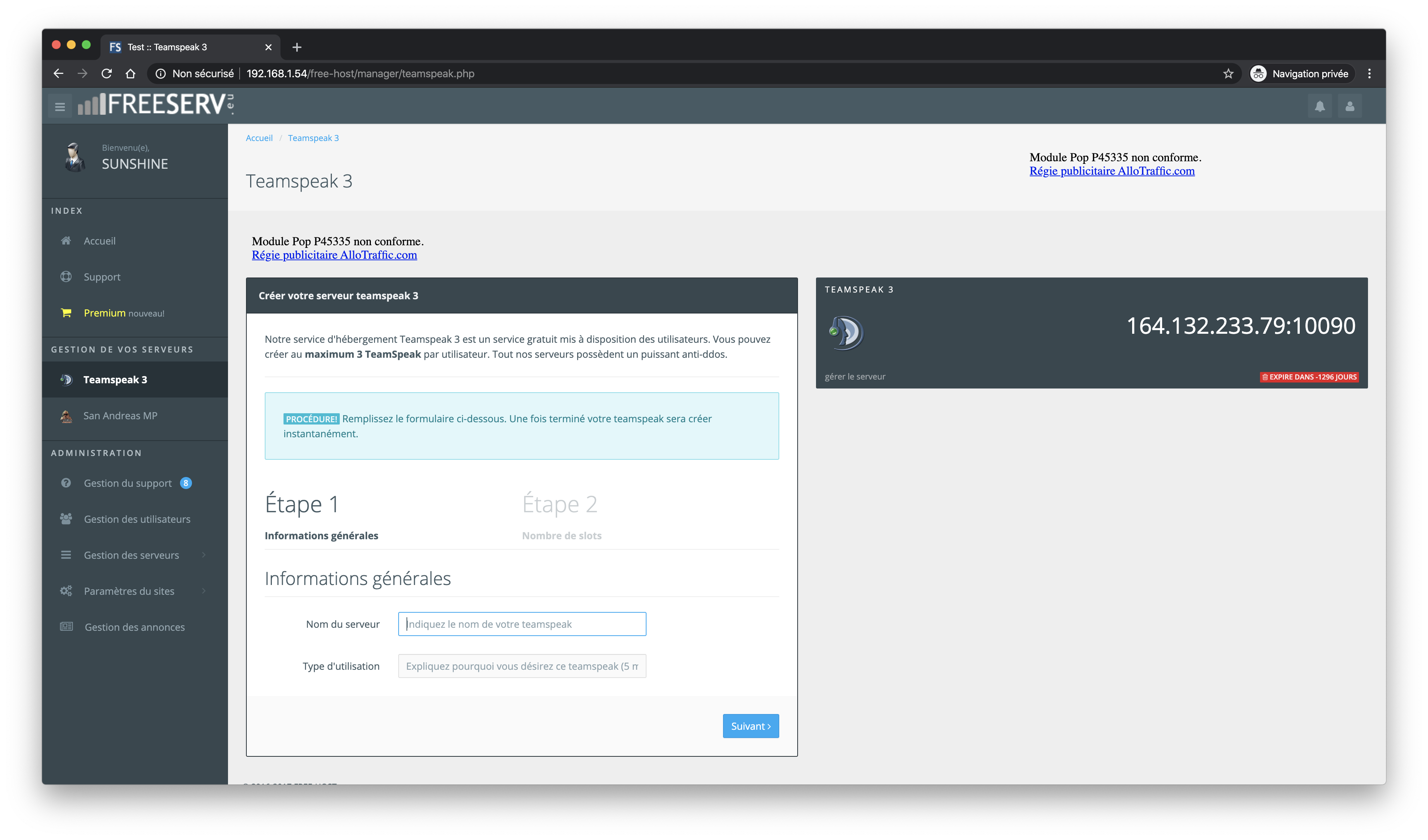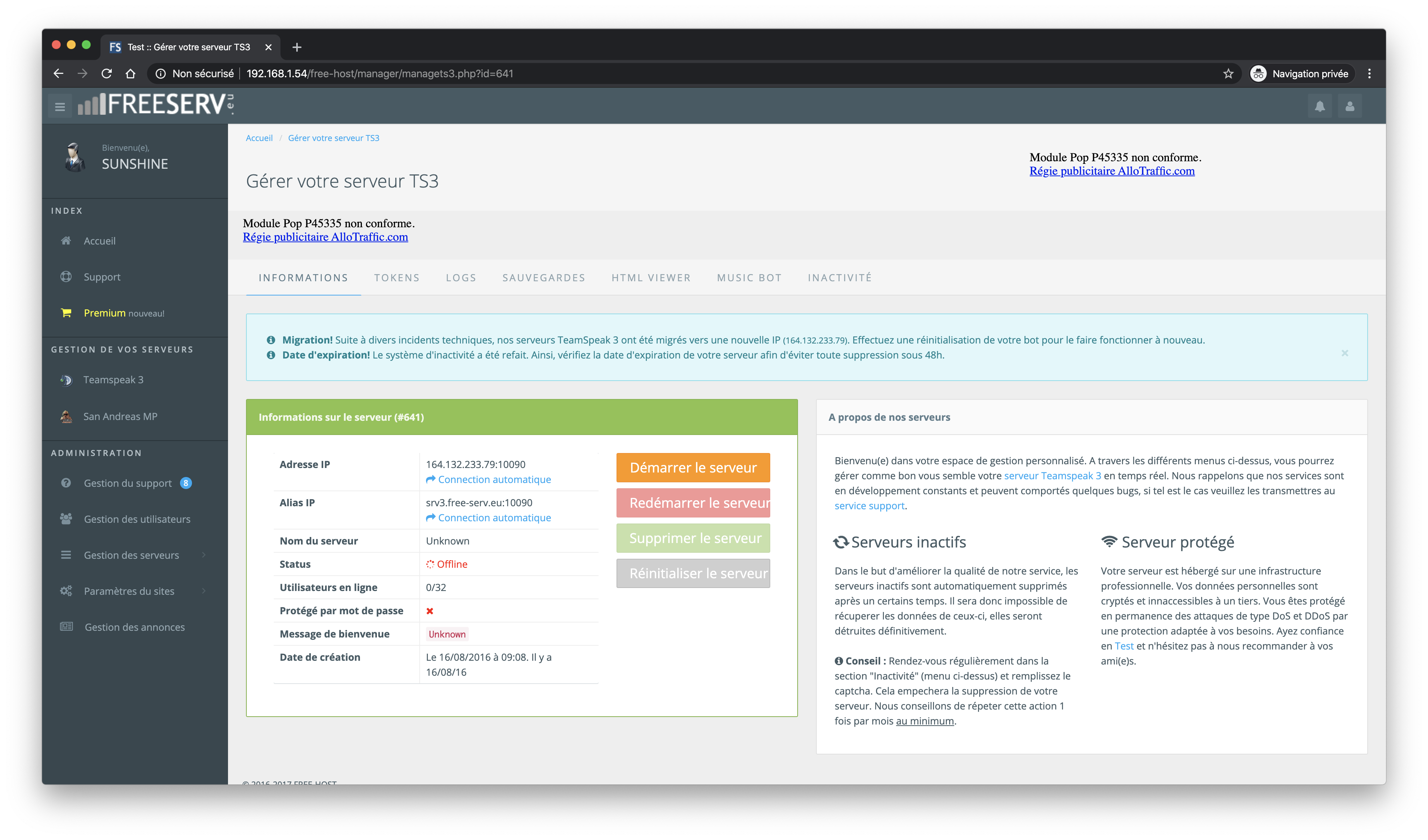 Site internet d'hébergement de serveurs de jeux et vocaux. Ce site permet de créer des serveurs et les administrer. Il embarque une partie administrative complète pour permettre aux administrateurs de gérer les serveurs et utilisateurs hebergés sur l'infrastructure.